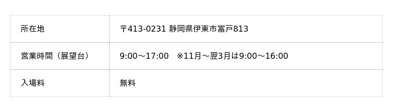 レンズが置かれている灯室の下に展望台があるユニークな灯台で、営業時間中は無料で登ることが可能です。溶岩岩石海岸の絶景はもちろん、晴れた日には遠くに伊豆七島や天城連山まで見渡せます。