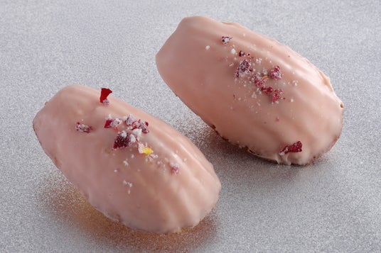 レモン味のマドレーヌにバラフレーバーのチョコレートをコーティングした、さわやかな味わいの焼菓子です。