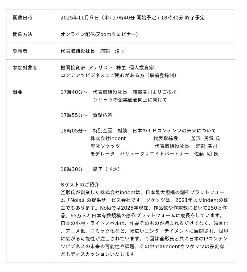 株式会社ソケッツIR Day 2025開催のお知らせ