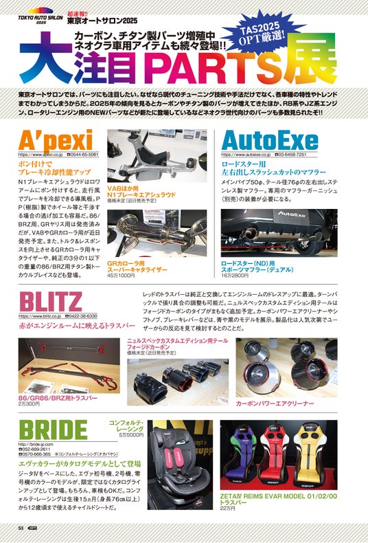 特別付録『スーパーチューンドコレクション』では、東京オートサロン2025に出展された、250台を超えるスポーツカー系チューンドを掲載。幕張メッセに来られなかった人も、これを読めば最新のチューニングトレンドが感じ取れるはずだ。