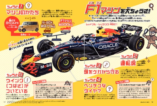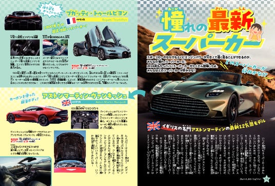 世界の最新のスーパーカーや、モータースポーツの最高峰、F1マシンのひみつなど、スポーツカー&スーパーカー好きは見逃せないページもたくさん。