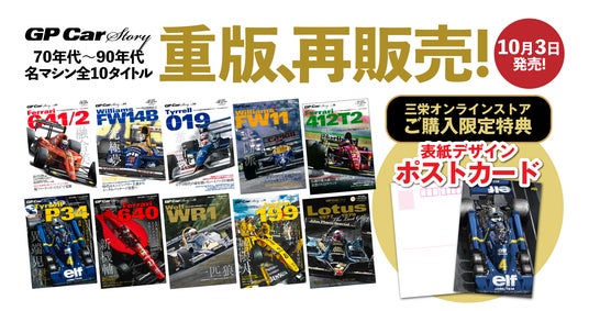 在庫切れとなっていた「GP Car Story」から70年代~90年代の名マシン10台分10タイトルを重版のうえ再販売決定。