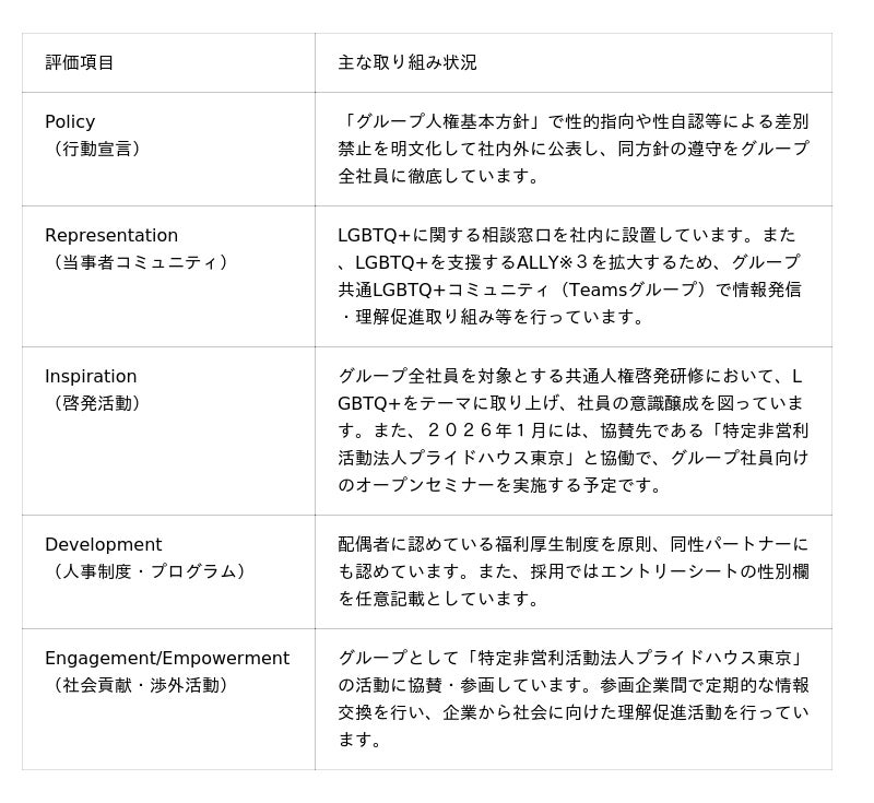 LGBTQ+に関する「PRIDE 指標 2025」でグループ5社が「ゴールド」評価を受賞