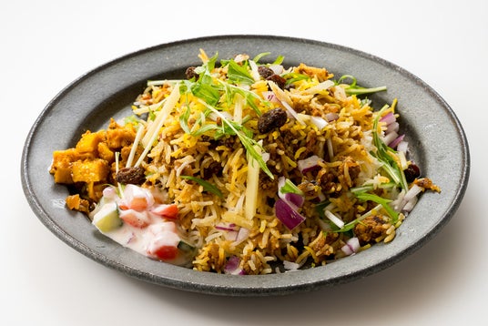 豚ひき肉のビリヤニ/魚介のビリヤニ/枝豆とキチンのプラオ風、ほか