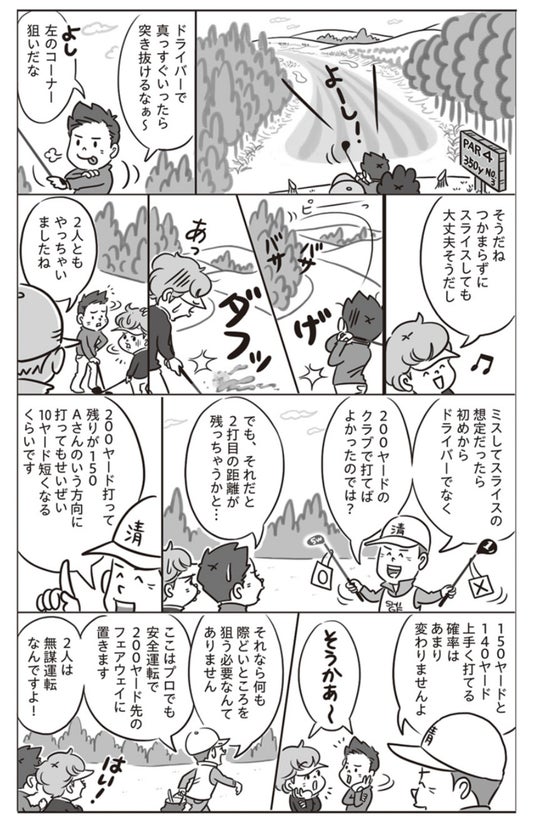 序章「全てのアマチュアゴルファーに贈る格言」より、プロのゴルフは安全運転、アマチュアは無謀運転
