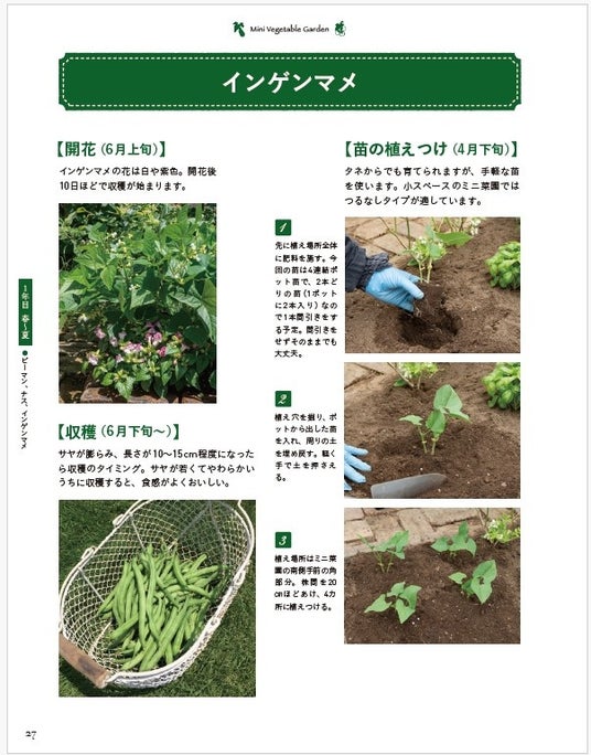 そのうえ、完全な地産地消なので、環境への負荷も軽減できます。また、庭がない方のために、野菜コンテナや鉢で作るミニ菜園の植え方や栽培方法も紹介しています。