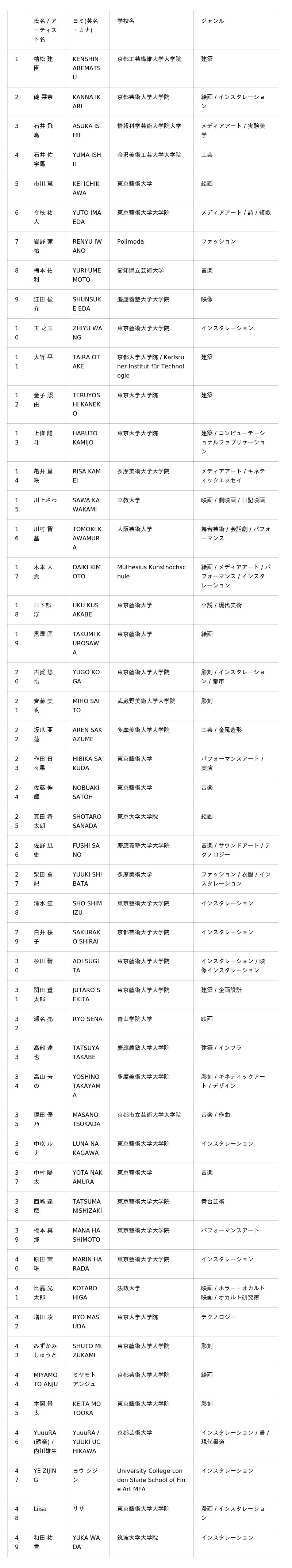 年間120万円の奨学金給付を行う「クリエイター奨学金」。この度、エントリー数1,402名から選ばれた9期生49名の採択が決定。1年間の奨学金給付と合宿や展覧会などの年間カリキュラムで創作活動を支援。