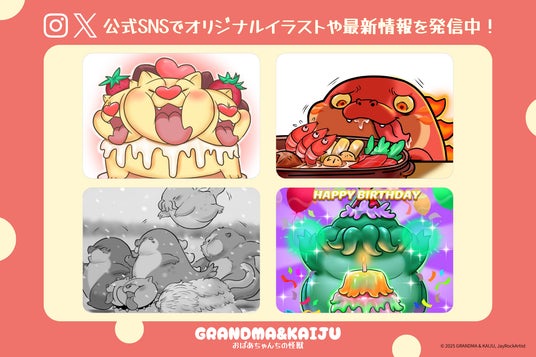 『おばあちゃんちの怪獣』公式X・Instagramではほっこり癒されるイラストや4コマ漫画を掲載中!