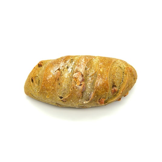 地元・伊勢志摩産の香り高い伊勢茶を練り込んだ、風味豊かなフランスパン。噛むほどに広がるお茶のほのかな渋みとコクが、香ばしいクルミの食感と絶妙に調和します。外はパリッと、中はもっちりとした食感で、お茶の奥深い味わいが楽しめる一品。和の風味を活かした、新しいフランスパンの魅力をぜひご堪能ください。