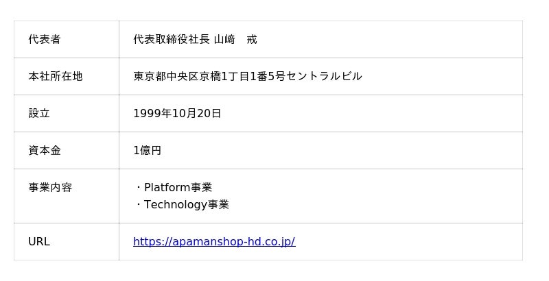 【APAMAN株式会社 会社概要】