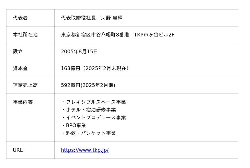 【株式会社ティーケーピー 会社概要】