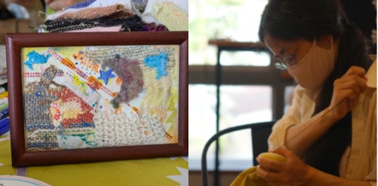 ●ワークショップ:手織りのコースターづくり体験、手織りハギレのコラージュ体験