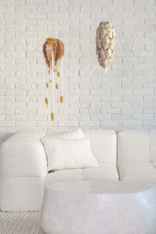 店内に展示されることによりインテリアと作品の間に明確な対比がうまれ、また同時に不思議な調和が生まれます。