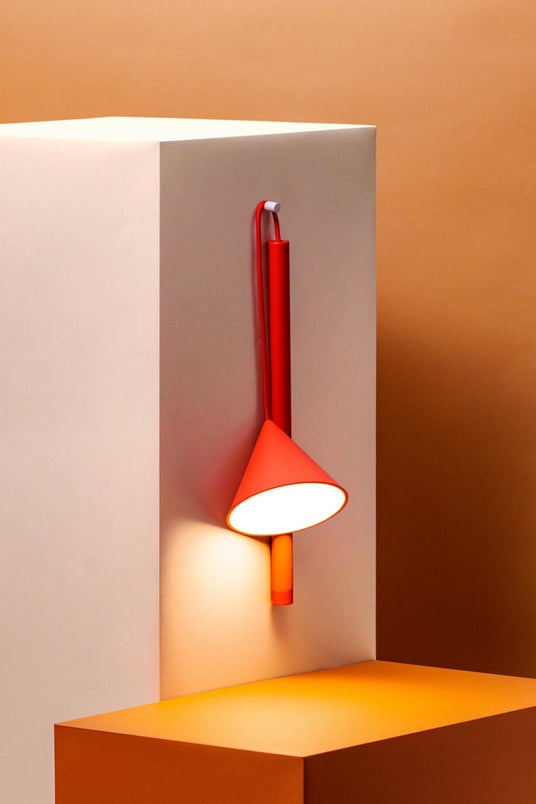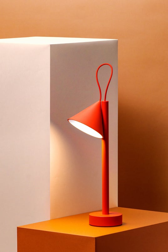 日本語で、ブロック等を積み上げる玩具を指す「つみき」からインスピレーションを受けた充電式のデスクランプ。一般的なテーブルライトを構成するシェード、ステム、ベースという要素を再構築することで新しい照明のあり方をデザインしました。シェードはマグネットでステムに付いており、好みに合わせて上下にスライド、360度回転させることができます。また、ステムにバッテリーを内蔵しているため、ベースから取り外してポータブルライトとして持ち運ぶことも可能。