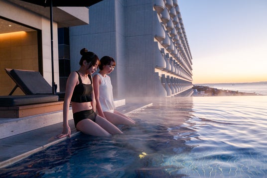 あたたかなインフィニティプールで目の前に広がる水平線と一体になったような圧倒的な浮遊感を体感できます。温度帯の異なる4つのサウナでは、富士山を望めるパノラミックサウナをはじめ、岩盤浴室などやテラスからも絶景をお楽しみいただけます。