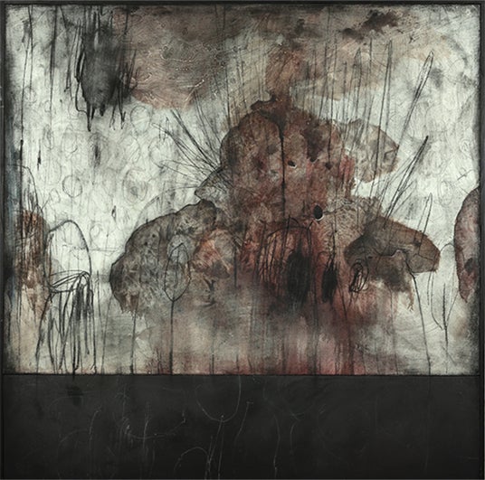 海野 厚敬 「春の歌」油彩・アクリル絵具・木炭・パステル/綿布、117.0cm×117.0cm