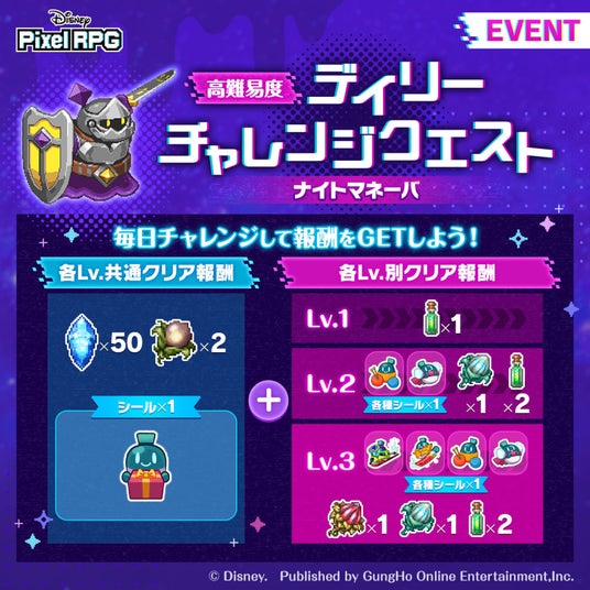 『ディズニー ピクセルRPG』ゲーム内イベント開催決定!「デイリーチャレンジクエスト ナイトマネーバ」