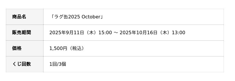 2025年9月11日(木)15:00より、「ラグ缶2025 October」の販売を開始いたします!