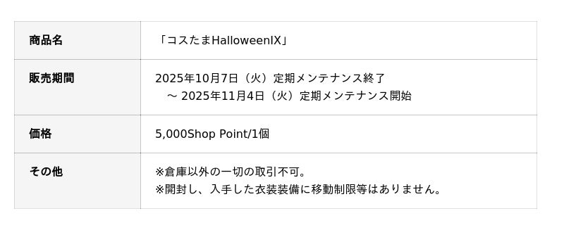 「コスたまHalloweenIX」販売開始