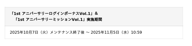 「1st アニバーサリーログインキャンペーン」