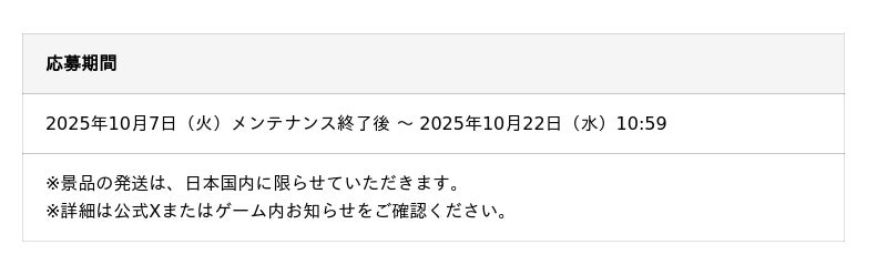 https://x.com/PixelRPG_jp/status/1975474974766080246『ディズニー ピクセルRPG』公式Xアカウントでは、「1st アニバーサリーリポスト&コメントキャンペーン」を開催いたします。公式Xをフォロー&キャンペーン対象ポストをリポストで参加、さらに、1周年のお祝いコメントを投稿いただいた方の中から抽選でAmazonギフトカード10,000円分をプレゼントいたします。皆様からのお祝いコメントをお待ちしております。