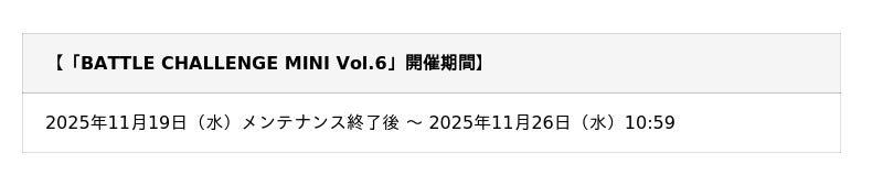 期間限定ガチャチケットなどがもらえる「BATTLE CHALLENGE MINI Vol.6」開催!