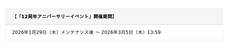 おかげ様で12周年!「12周年アニバーサリーイベント」開幕中!