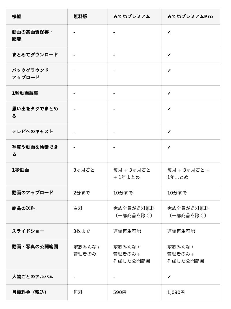 ■「みてねプレミアム」「みてねプレミアムPro」について