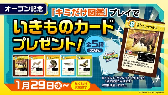 「いきものレスキュー キミだけ図鑑」プライムツリー赤池店のオープンを記念して、「いきものカード」(ランダム全5種)をプレゼントいたします。