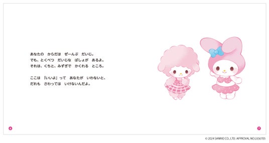 お子さんの体と尊厳を守るためのメッセージがたっぷり。マイメロディ、クロミ、ピアノちゃん等、大好きなキャラクターと一緒に、プライベートパーツ等の体を守る意識を育める、おまもりのような一冊です。