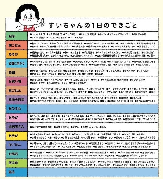▲すいちゃんが1日にしたこと表(『すいちゃんはいそがしい』巻末より)