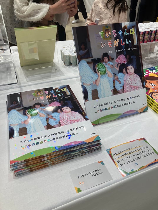 会場には、こどもの視点ラボ・プロデュースのグッズ&書籍販売コーナーがあり、イベントオリジナルのグッズとともに、絵本『すいちゃんはいそがしい』も購入できます。