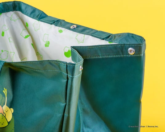 お会計後のレジカゴにセットして詰めるだけで、簡単に商品をまとめられる便利なバッグ! 正面には、ポケット風デザインにぎゅっと集まったべじまるをデザイン!