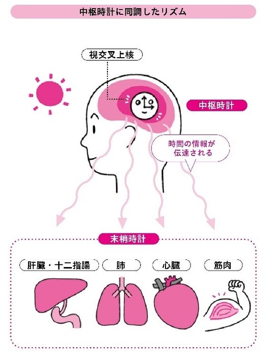 人間のからだには、時計遺伝子によって動く24時間の「体内時計」があり、これが睡眠・食欲・体温・ホルモン分泌など、からだのあらゆる機能をコントロールしています。