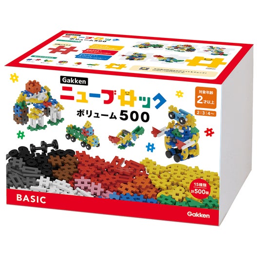 ▲「Gakkenニューブロックボリューム500」(15種500個入り)/500個のブロックを使って、思い思いに好きなものをつくってあそぼう。