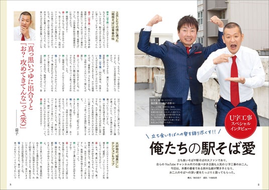 ・駅そばYouTubeが大人気のU字工事が巻頭インタビューで登場!