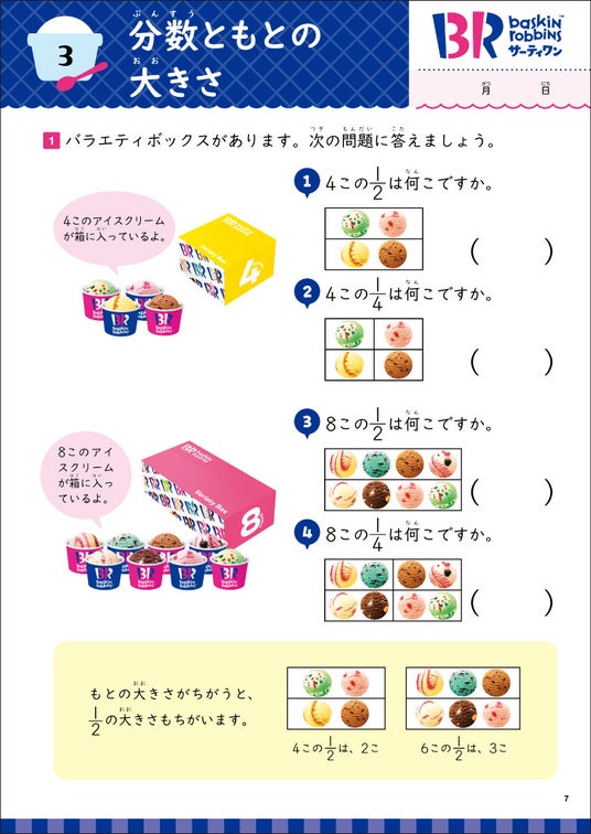 ■『人気メニュードリル ピザーラ・サーティワン アイスクリーム・不二家 はじめての分数』