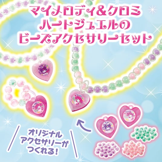 ふたりのかわいいシールでデコれる、「マイメロディ&クロミ ハートジュエルのビーズアクセサリーセット」です。