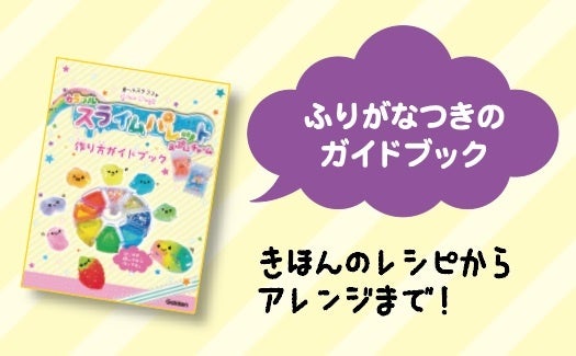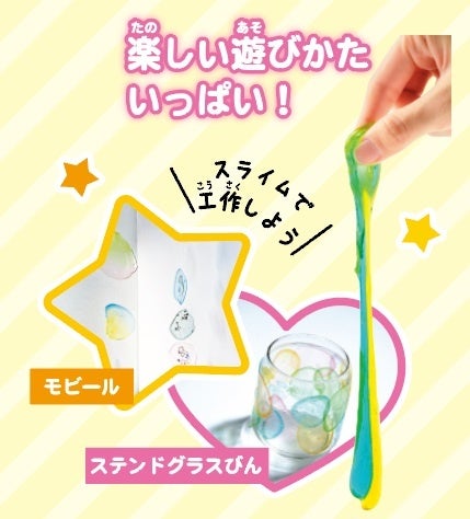 ふりがなつきのガイドブックでは、スライムを使った工作のアイデアを紹介しています。スライムの色のレシピや、実験のヒントも掲載しているので、自由研究にもぴったり。好きな色にアレンジしたり、ラメやフレークでデコったりすることで、お子さまの発想力や想像力もアップします!