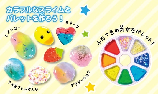 大人気商品『スライムパレット』がリニューアル! にじ色のスライムやかわいいチャームが作れるキット『カラフルスライムパレット&ぷにチャーム』が登場!