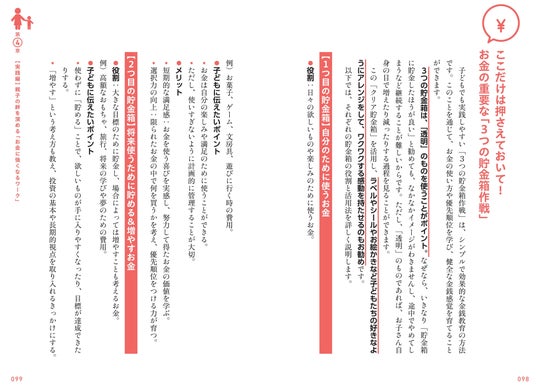 本書では、「家計」「おこづかい」「貯金と投資」「キャッシュレス」「働くとは?」「お金の正体」といった質問にどう答えればいいのかを、優しく丁寧に解説します。親子で一緒に考える、幸せに生きるために必要なお金の知識を1冊にまとめました。