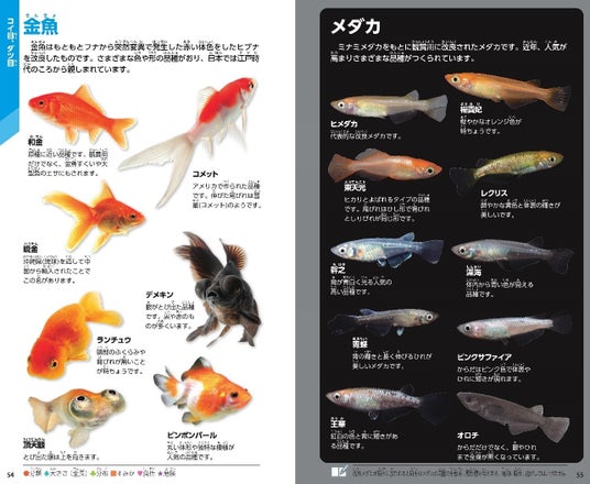 ▲今回新たに鑑賞魚の章を追加。身近なペットとしても人気のメダカやグッピーなどは、代表的な品種を紹介。