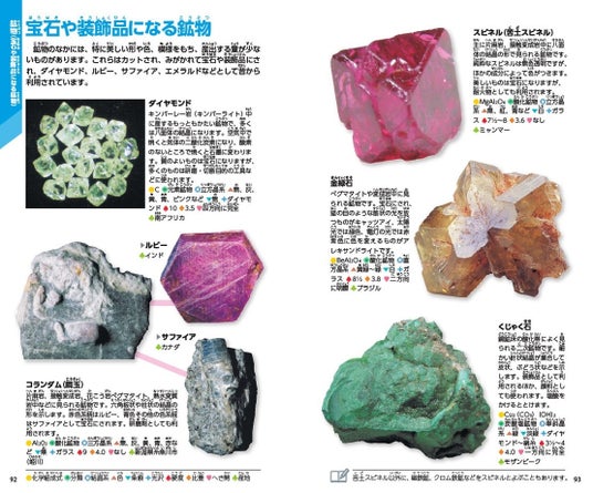 ▲人気の鉱物は宝飾品、金属や工業利用など大きく4つの用途に分けて紹介。