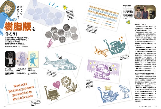 付属のガイドブックでは、印刷の手順や作例に加え、樹脂版を使った応用方法や老舗活版印刷所へのインタビューも紹介。クラフト初心者から印刷好きの文具ファンまで、幅広い方に楽しんでいただける内容です。
