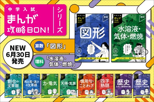 株式会社 学研ホールディングス(東京・品川/代表取締役社長:宮原博昭)のグループ会社、株式会社 Gakken(東京・品川/代表取締役社長:南條達也)は、2025年6月30日に『中学入試まんが攻略BON! 算数 図形 改訂新版』と『中学入試まんが攻略BON! 理科 水溶液・気体・燃焼 改訂新版』を発売いたしました。