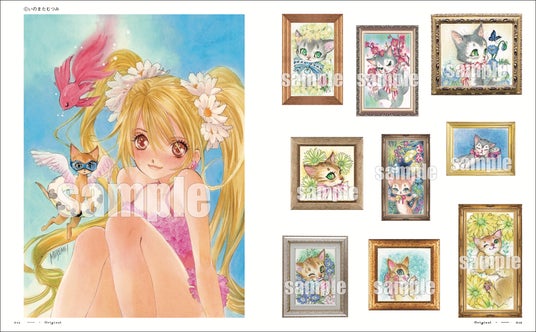 『MIA』では、著者が愛してやまなかった猫と少女のオリジナルイラストや、『新世紀GPXサイバーフォーミュラ』などの人気アニメ、ゲーム、小説のカバーイラスト、パッケージイラストの魅力的なキャラクターたちが多く掲載されています。初キャラクターデザインを手掛けたアニメ『魔境伝説アクロバンチ』のイラスト3点は、この画集で初掲載でファン必見です。