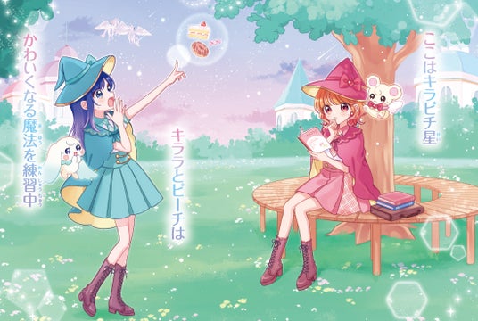 キララとピーチはおっちょこちょいな魔女。でも、誰かといっしょなら最後までがんばれる! どんな困難もいっしょに乗り越える、キララとピーチの仲の良さに注目してください。