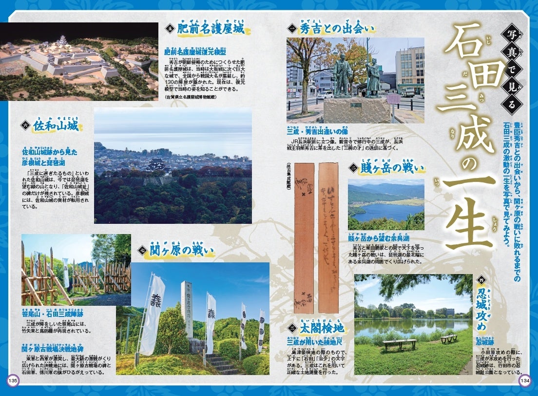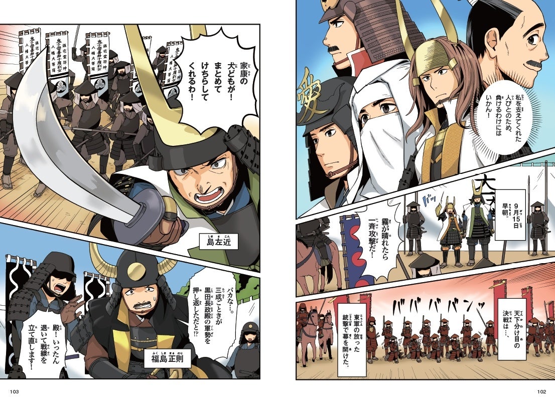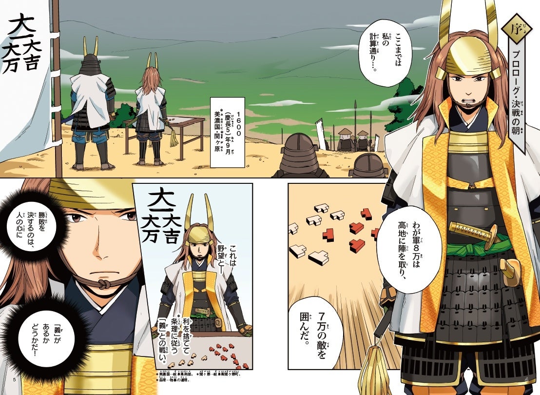 見返しページには関ヶ原の戦いの配置図を掲載! 巻末ページは石田三成の業績や、関連人物紹介、年表、そして石田三成の名言などもそろっているので、まんがの内容をより深く理解できると同時に、大河ドラマの予習にもぴったりです。