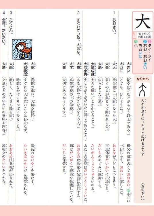 ▲紙面「大」の項目:漢字の意味と、熟語が直結していて、わかりやすい