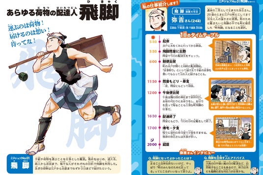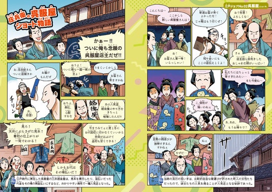 各職業に4~6ページの本格マンガを収録しています。物語を読み進めることで、当時の仕事の様子や人々の苦労を、まるで自分も体験しているかのように自然と学べます。